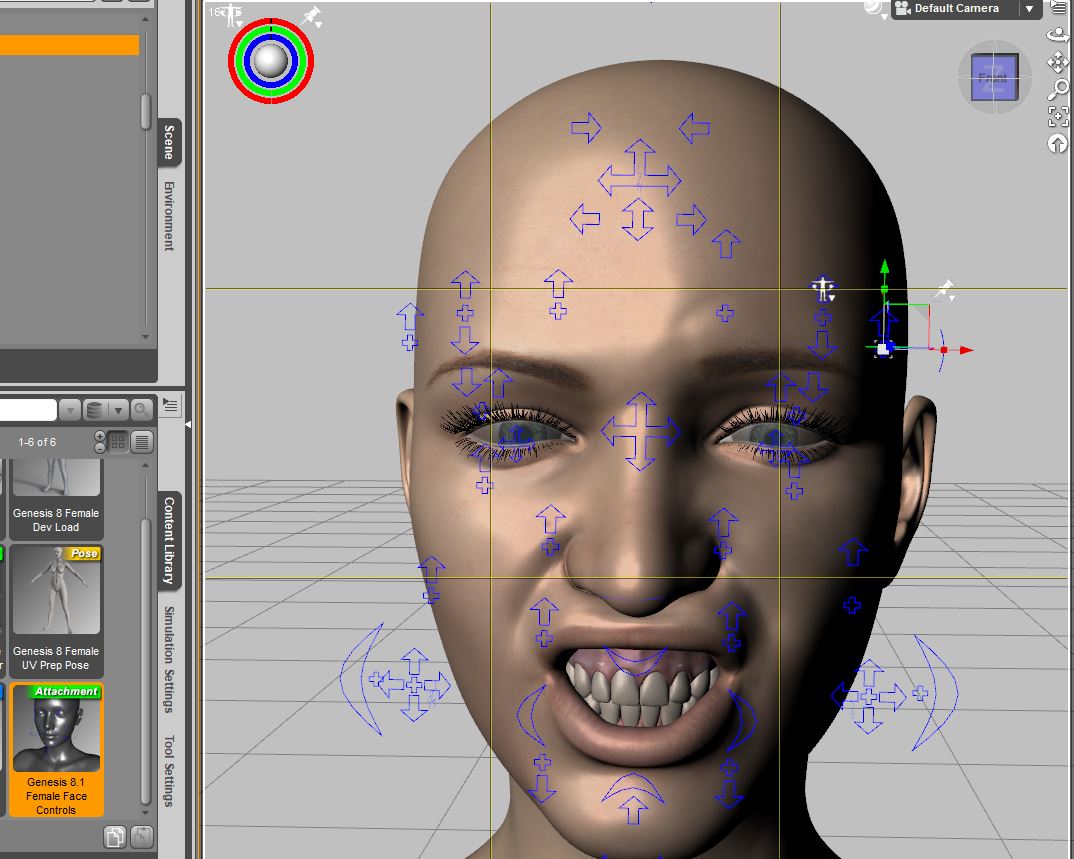 Klick auf das "+"-Zeichen = achssymmetrisch, Klick auf einen einzelnen Pfeil = nur der jeweilige Morph wird angesteuert