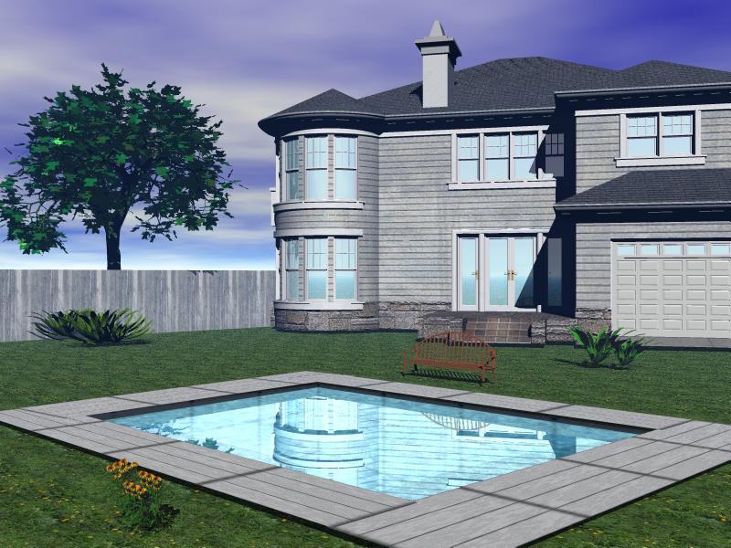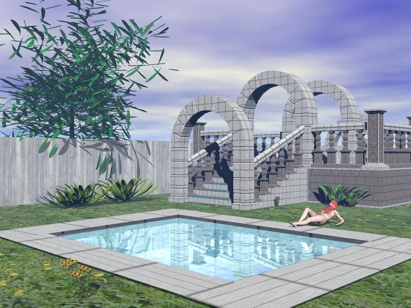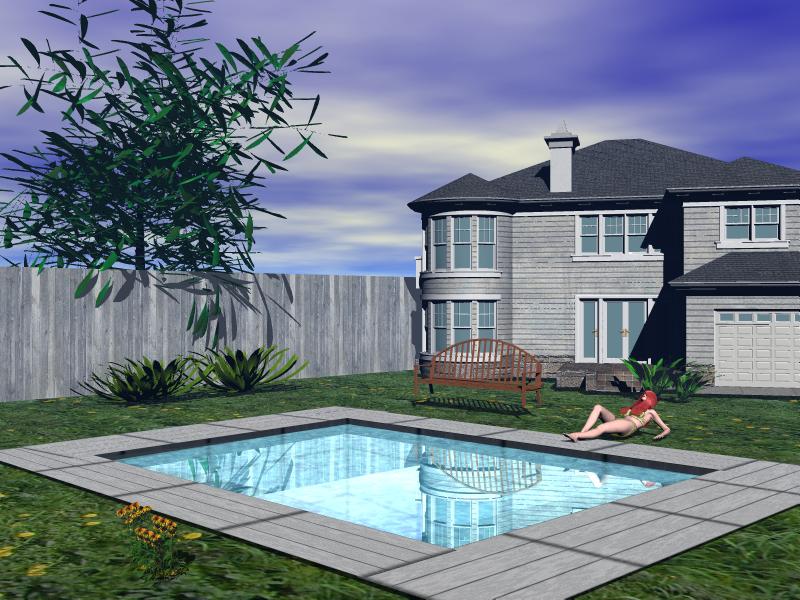 Dann habe ich die passende Textur für meinen Zaun gefunden und hier und dort ein paar Pflanzen hin gesetzt, ach ja den Pool habe ich auch tiefer gemacht. -