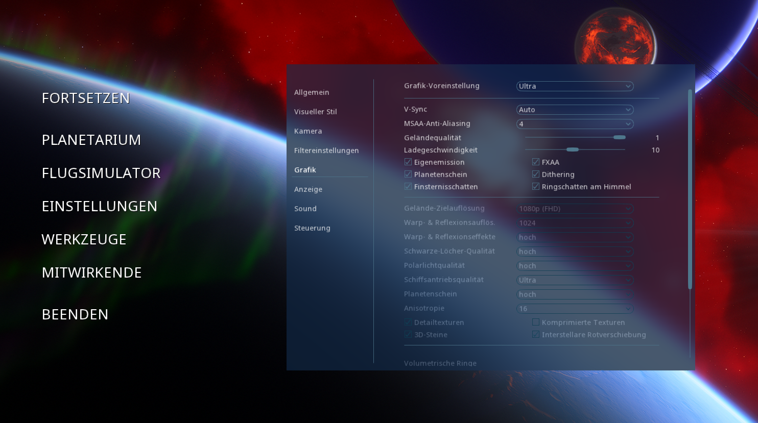 Nun habe ich schon weiter Erfahrungen gemacht mit Space Engine. Es ist eine tolle Sache dass man nicht nur Planeten anschauen kann, aber Space Engine hat noch die Möglichkeit auf den Himmelskörper zu landen (kein Witz). Auch wenn der Grafikmodus auf ultra gestellt ist gibt es eine Option die Oberflächen detailiert anzuschauen. Wie auf dem Screenshot zu sehen ist kann da noch weiter optimiert werden.