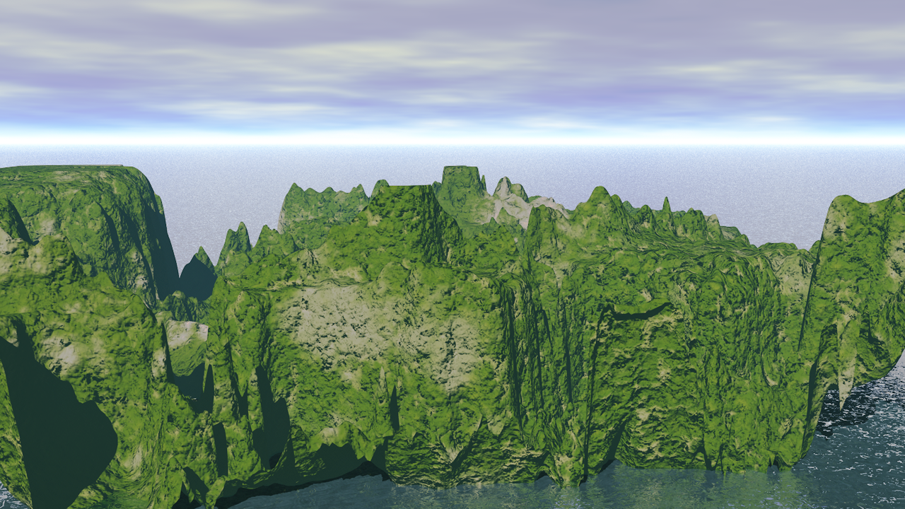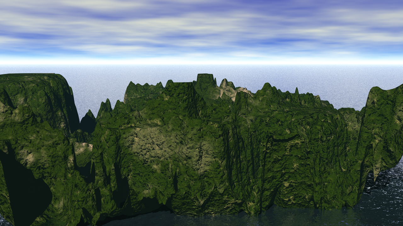 Was mich aber etwas nervt, mein erstes selbstgezeichnetes Heightfield von weiter oben hat TG anders als die neue Datei verknotet. Beides sind nur PNG Dateien, beide habe ich nur über Add Terrain - Heightfield (load file ) geladen. Mein selbstgezeichnetes hat TG aber bei Fractal wrap verknotet und das jetzige nur als Heightfield shader. Ich weiß nicht mehr, was ich beim ersten Versuch anders machte.