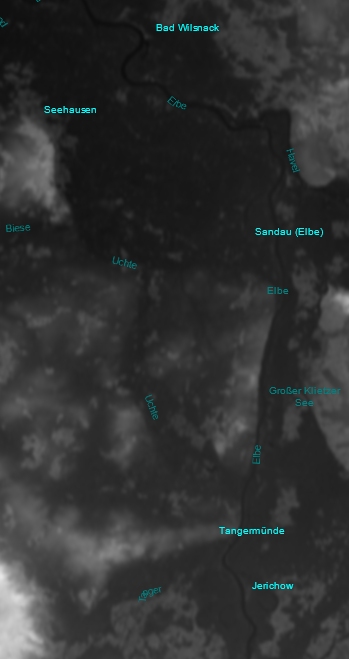 Dazu habe ich heute den Heightmapper ausprobiert. Zuerst die Ortsnamen mit anzeigen lassen, um besser unsere Umgebung zu finden. Angezeigt hat der mir die Höhen mit 24 bis 76 Metern, was hinkommen könnte. Die Größe der exportierten heightmapper.png entspricht des sichtbaren Fläche es Monitors, wobei ich weit reingezoomt habe, und die Bittiefe beträgt 32. Also diese heightmapper.png hat Terragen erst einmal ohne Probleme gefressen.