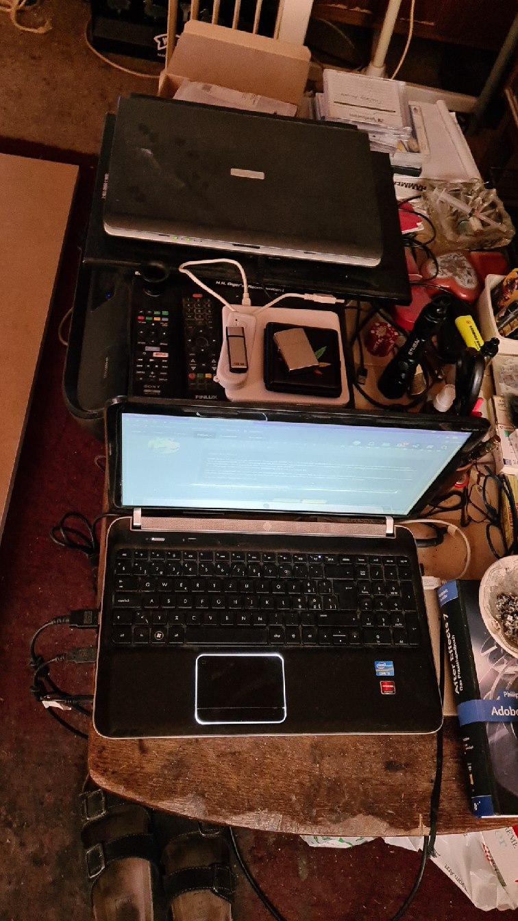 Soweit bin ich noch gar nicht gekommen. Im Moment stehen meine Rechner an provisorischen Plätzen, da ich ein neuer Arbeitstisch vorbereiten muss - die Tischbeine sind zu lang. So bleibt alles mehr oder weniger liegen. Wenn erstmal alles sauber eingerichtet und konfiguriert ist, kann ich wieder konzentriert arbeiten. z.Z. lebe ich mit einem Provisorium. Einfach zuwenig Platz. ![]()