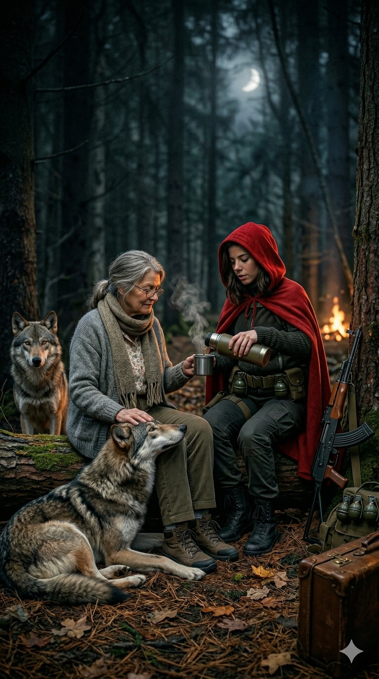 Der erste Clip von gestern war zu einer anderen Version, doch von Grok und nicht täuschen lassen. Es geht nicht um Gewalt, es geht eher um eine Parodie mit etwas Satire und um das Gegenteil von Gewalt, nämlich darum, dass man nicht gleich auf alles schießen soll, weil der Wolf in dieser neuen Version vom Märchen der beste Freund der Großmutter ist, der ihre schmerzenden Glieder wärmt. Das Original, etwa drei Wochen alt und bereits 1,2 Millionen Aufrufe und 30.000 Likes. (Ob er dafür Bots benetzte, weiß ich sicherlich nicht, doch es ist einfach gut.)