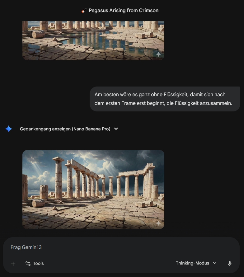 Auch für den Refrain hatte ich eine Grundvorstellung mit "Pegasus eile", ChatGPT kann aber besser reimen.