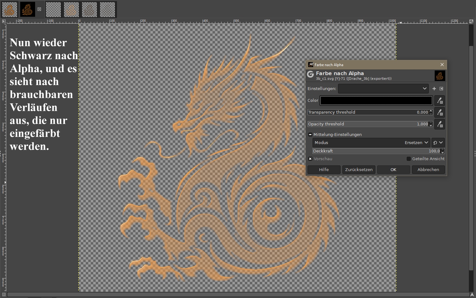 Eine Idee schwieriger wird es erst, wenn z.B. Teilflächen etwas mehr Transparenz bzw. etwas weniger Deckung aufweisen sollen. Aber auch kein wirkliches Problem, dann nimmt man sich einmal im Leben in DS eine Grautreppe und stellt überrascht fest, das es zwischen Schwarz und Weiß auch noch Grauwerte gibt. Welche Bereiche innerhalb einer Maske von einem Motiv völlig Schwarz sein sollten und welche mehr oder weniger Dunkelgrau, Grau oder Hellgrau, kann jeder für sich entscheiden. Die gewünschte Teiltransparenz lässt sich einfach anhand einer Grautreppe feststellen und ablesen. Denke, mein Beispiel dafür war selbsterklärend.