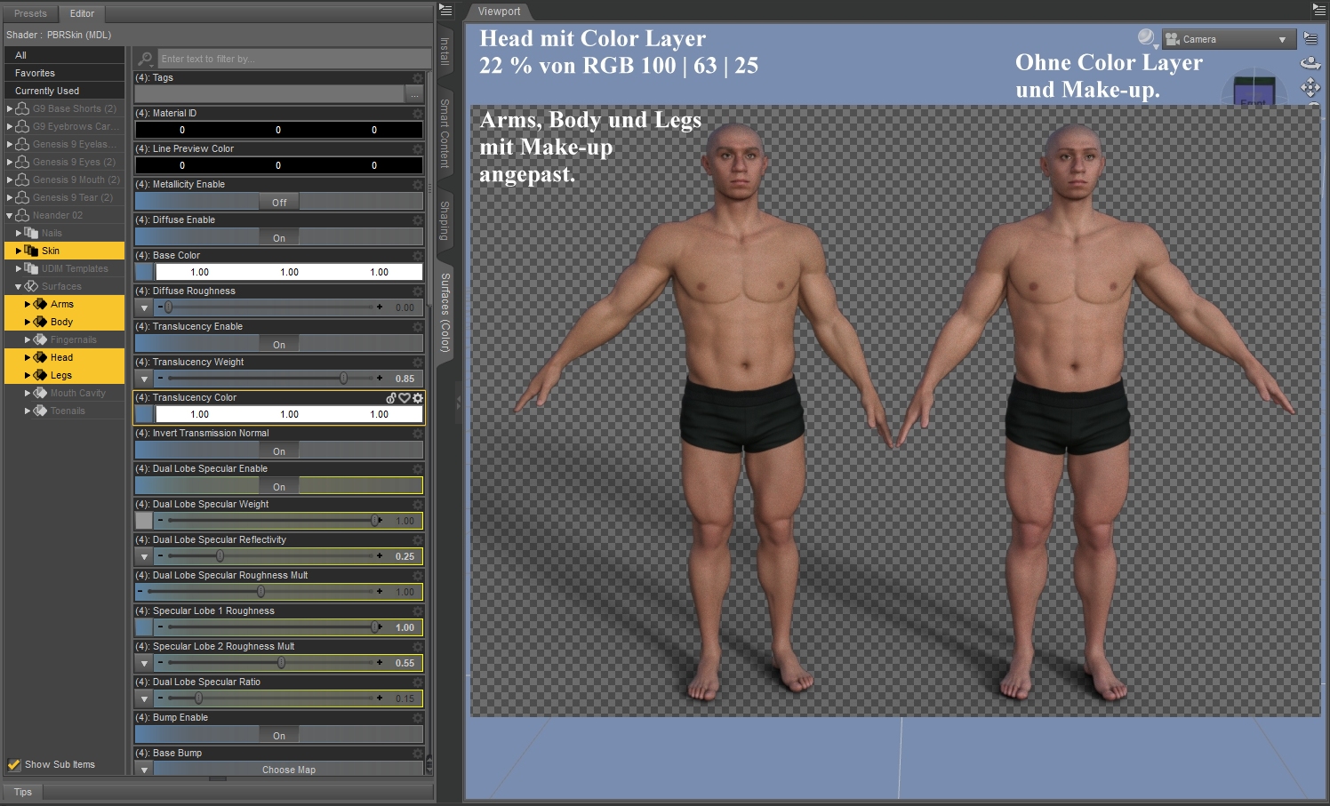 Denke, auch das ist ausreichend beschrieben, dass sich dafür die Mallinien besonders gut eignen, die DS zur Verfügung stellt. Über zeichnerische Fähigkeiten braucht man dafür nicht verfügen, es dauert bei fehlenden nur etwas länger, weil mehr Vergleiche zu Fotos und Vorschauen in DS erforderlich werden. Und man sollte für jede Korrektur eine neue Malebene anlegen, insofern die vorhandene bereits annehmbar war. In Krita sperrte ich bei Nachbesserungen alle bereits vorhanden Texturen gegen versehentliches Übermalen. Zumindest bis man zufrieden ist, dann werden die einzelnen ebenen ohnehin abschließend vereint.