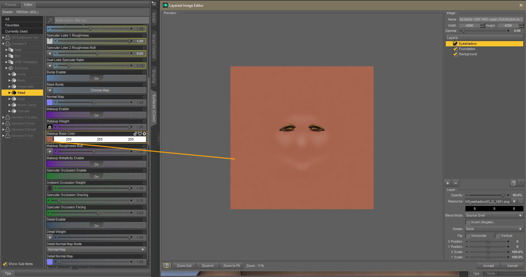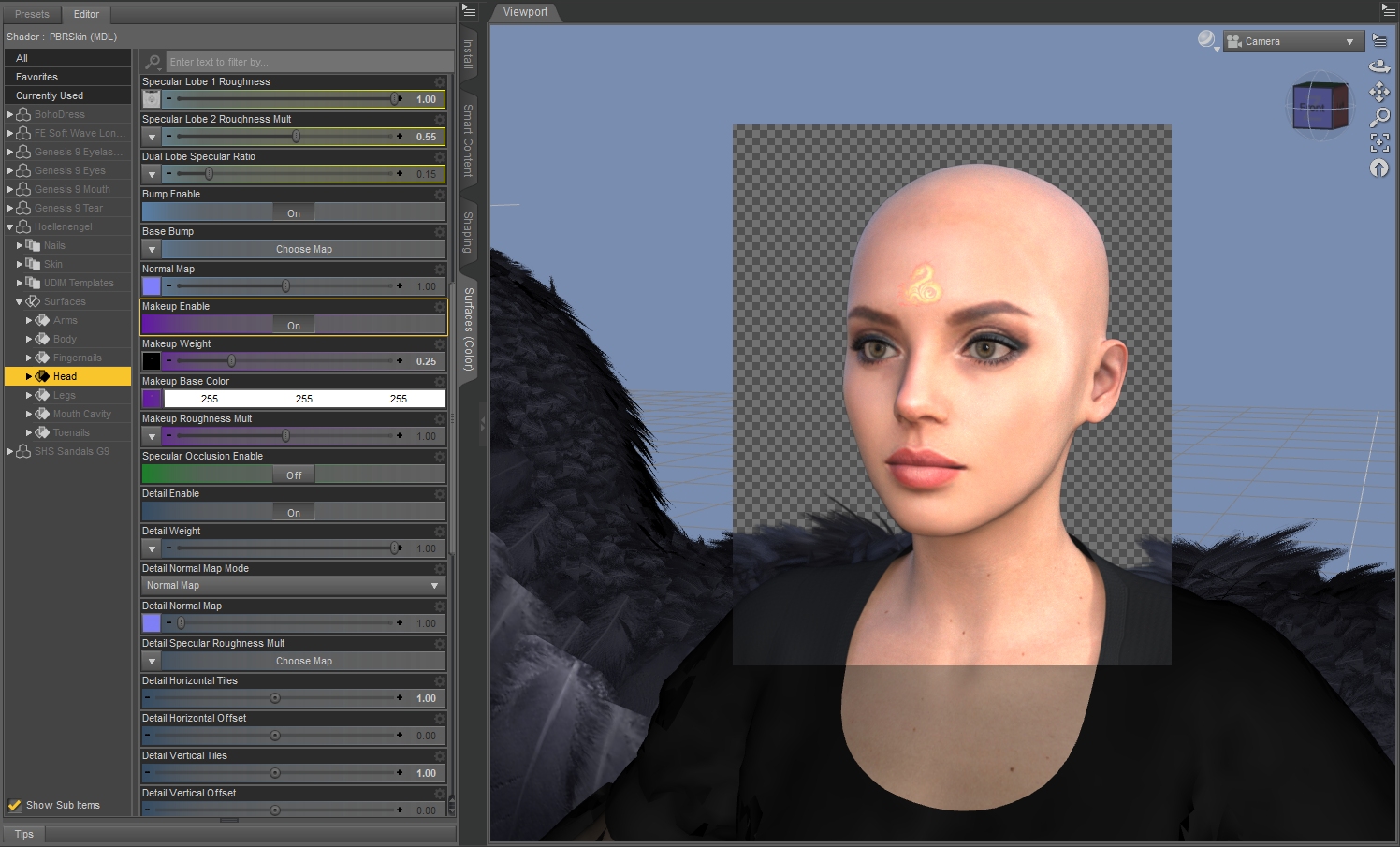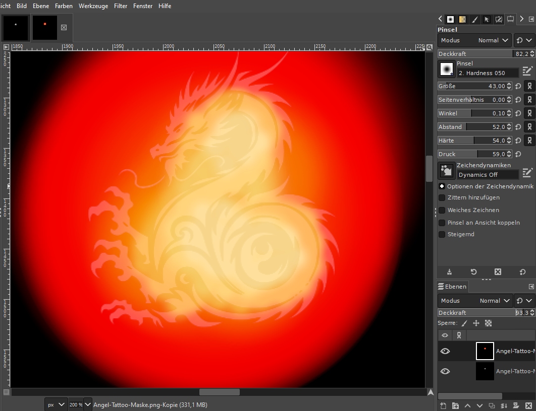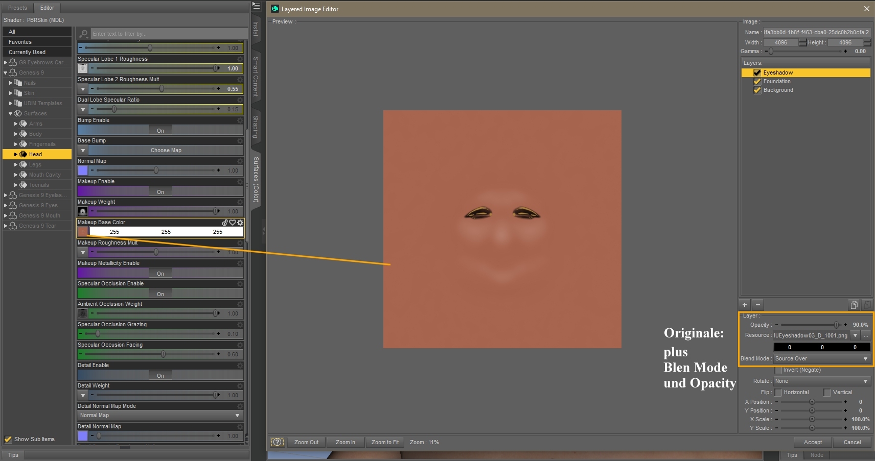 Das ist aber nicht nur für Tattoos. Für mehrfarbige Lidschatten usw. wird lediglich noch eine Textur für den Farbverlauf benötigt. Sollen z.B. Lidschatten sanft auslaufen, muss halt nur der Pinsel weicher eingestellt werden, irgendwelche zeichnerischen Fähigkeiten gehören bis hierher nicht dazu.