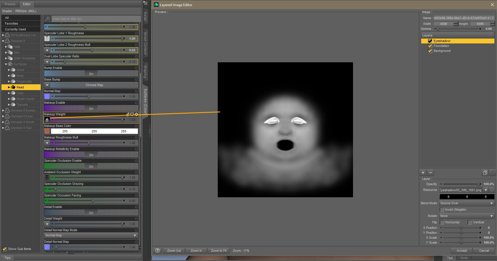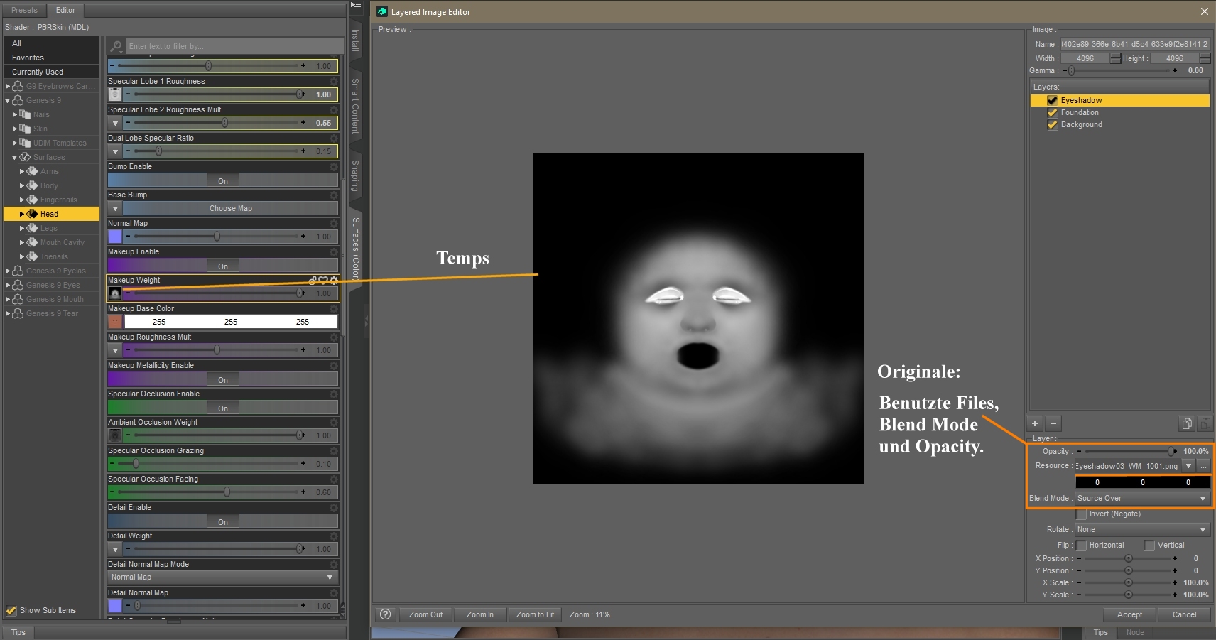 5. Die anderen beiden Texturen zu einer vereinen und fertig ist eine Maske fürs Make-up.
