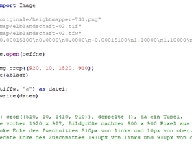 Die Größen richten sich nach den jeweils gemessenen Entfernungen und können schnell angepasst werden. Habe es quadratisch zugeschnitten, damit ich nicht zweimal messen brauchte, und dabei am Ende noch vertauschen. Zum Beschneiden von Images einige Notizen gemacht, sonst müsste ich später erneut überlegen. Nun sollten sich die einzelnen Schritte mit jedem Bildbearbeitungsprogramm und Texteditor durchführen lassen.