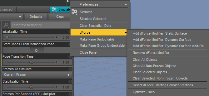 Heute habe ich es noch einmal etwas verändert, in der Scene von gestern tat er es noch nicht, doch in der von heute beginnt Simulator schon 20 Frames vorher, eine Ecke vom Kleid bei Bodenkontakt nach oben zu wölben. Das Bild ist 14 Frame vor dem Ende und da hat er den Soff vom Kleid an der unteren Ecke bereits wieder ein Stück nach oben gebogen.