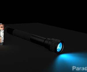 Ja, die Spiegelung ist weiss. Das liegt daran, dass das blaue Licht die Taschenlampe gar nicht belichtet. Das werde ich noch ändern. (Ist mir gar nicht aufgefallen, thx :D)