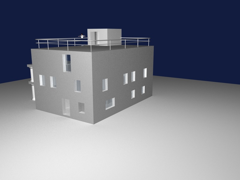 Das dach ist schon auf mehreren Bildern drauf, das habeich nicht extra nochmals gerendert. In das Loch kommt dann ne Wendeltreppe, Auf dem Dach kommt dann auch noch was rauf, wie ein Geländer und "Ausstiegskloch". Hmm, kA, wie dir Dinger heissen, ihr werdets dann ja sehen