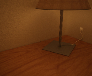 Der Lampenschirm ist 2D. Zuerst hatte er eine Dicke, aber dafür musste ich das Licht heller machen, was wiederrum der Atmosphäre schadet.