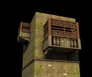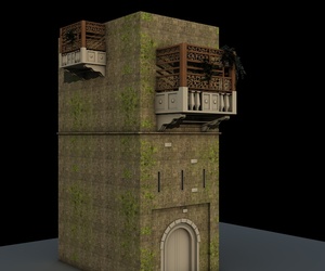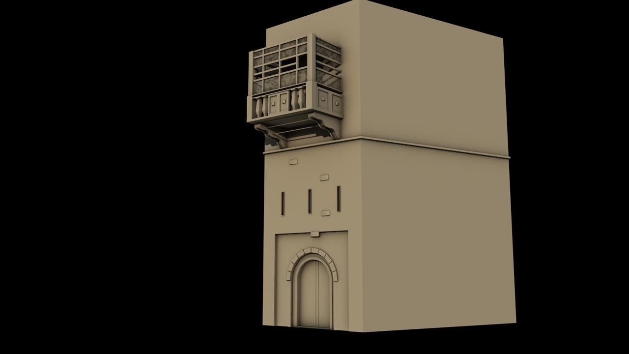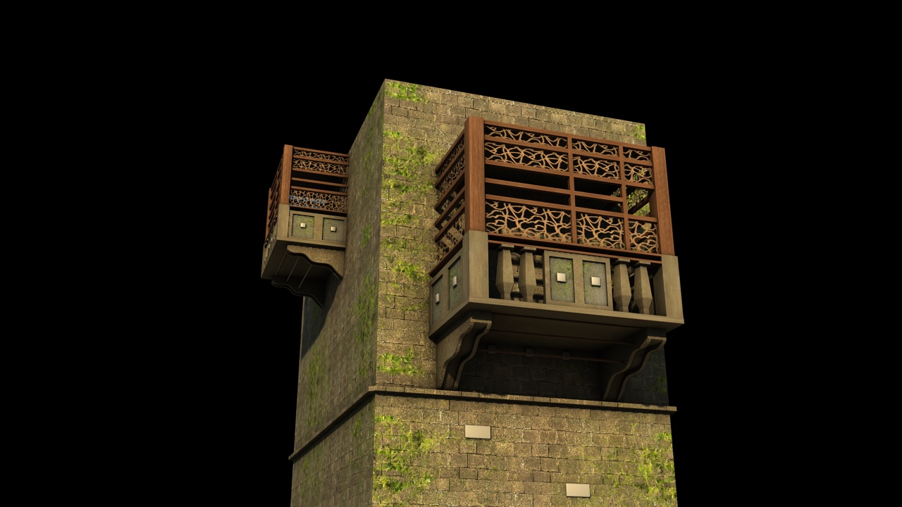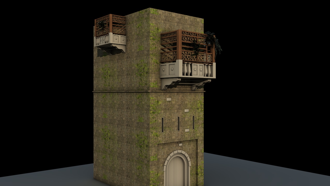 Bei den Balkonen (der eine ist bewusst kleiner gemacht, so sieht es bei der Referenz aus) sieht man das Efeu noch nicht so gut.. evt. muss ich da noch was an der Beleuchtung machen. Generiert wurde das Efeu mittels "Ivy Generator).