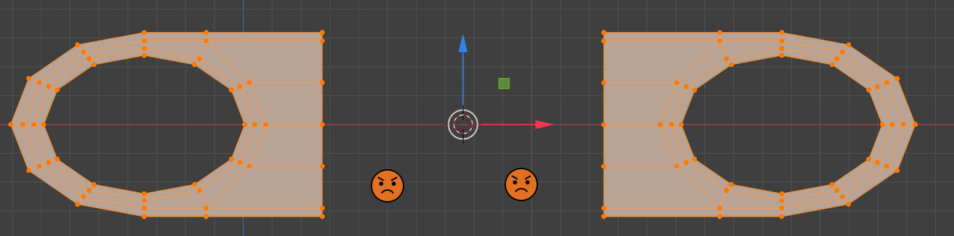 Erst habe ich die linke Figur erstellt, dann im Edit Mode diese kopiert, dann um 180 Grad rotiert und dorthin verschoben.