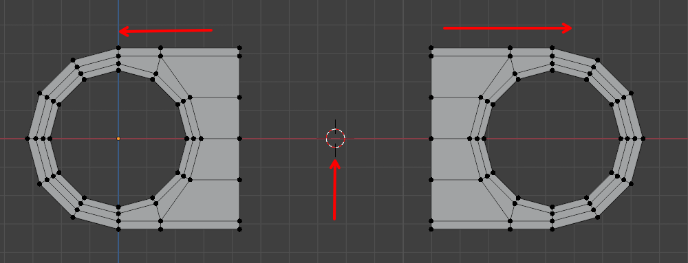 Möchte die linke und rechte Figur vom Mittelpunkt bzw. 3D Cursor aus nach rechts uns links verschieben ohne das sich die Objekte verzerren.