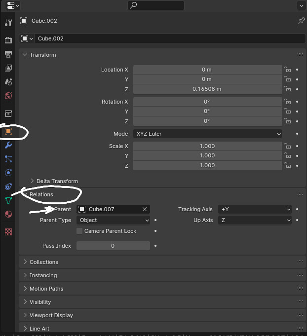 Das kann man in den "Object properties" unter "Relations" sehen: