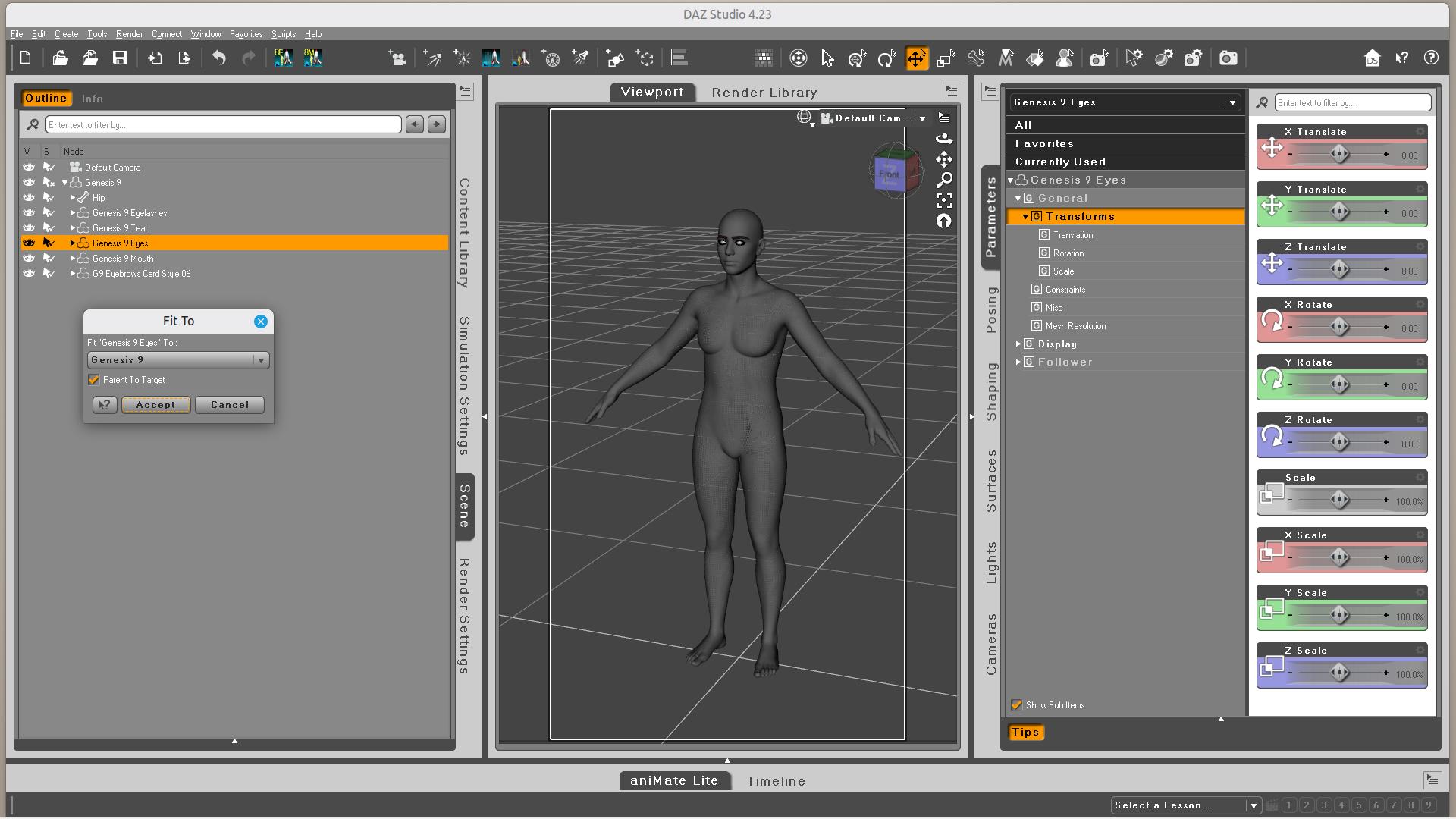 Bei Genesis 9 sind die Augen ja ein eigenständiges Object und an die Genesis 9 Figur Geparentent und mit Fit To syncroniesirt.