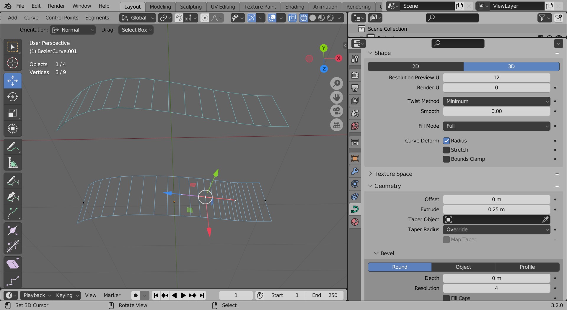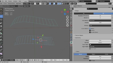 Ich habe mal eine Bezier per Extrude und Wirframe Ansicht sozusagen Visualiesiert.