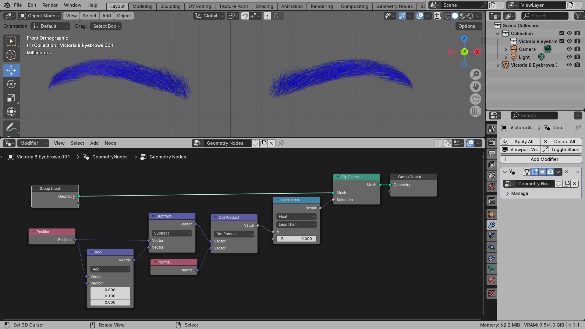 Bei den Victoria 8 Fibermesh Augenbrauen habe ich mir das mal angekuckt, Die Normals sind da etwas durcheinander,