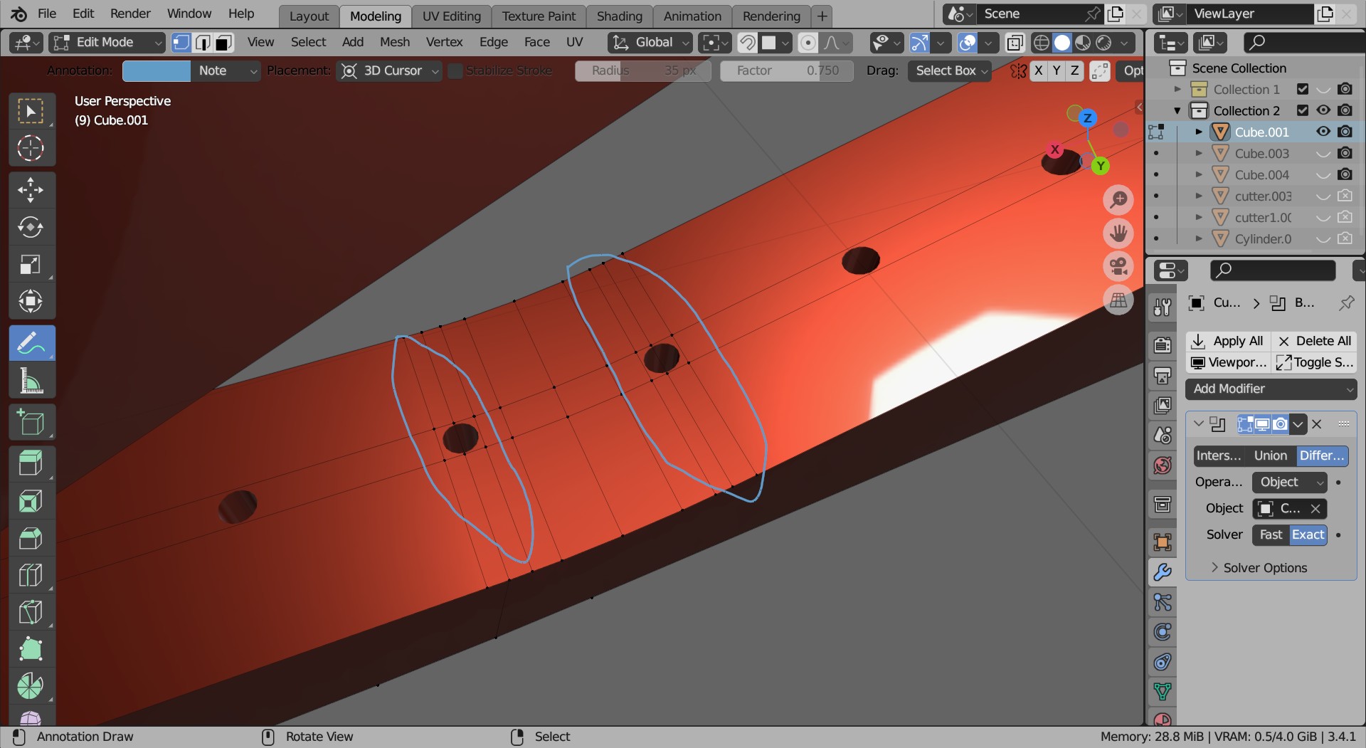 entsteht dan eine art Kick bzw Kannte. Mit Strg-T im Edit Mode habe ich mal die Face in Triangel Face umgewandelt wie es Blender sozusagen unter der Haube macht.