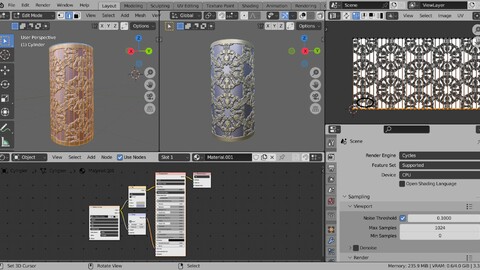 Nun hast du den dein Muster als Mesh. Diese nun per Shrinkwarp auf den Cylinder packen und die Warp Methode auf Project ändern.