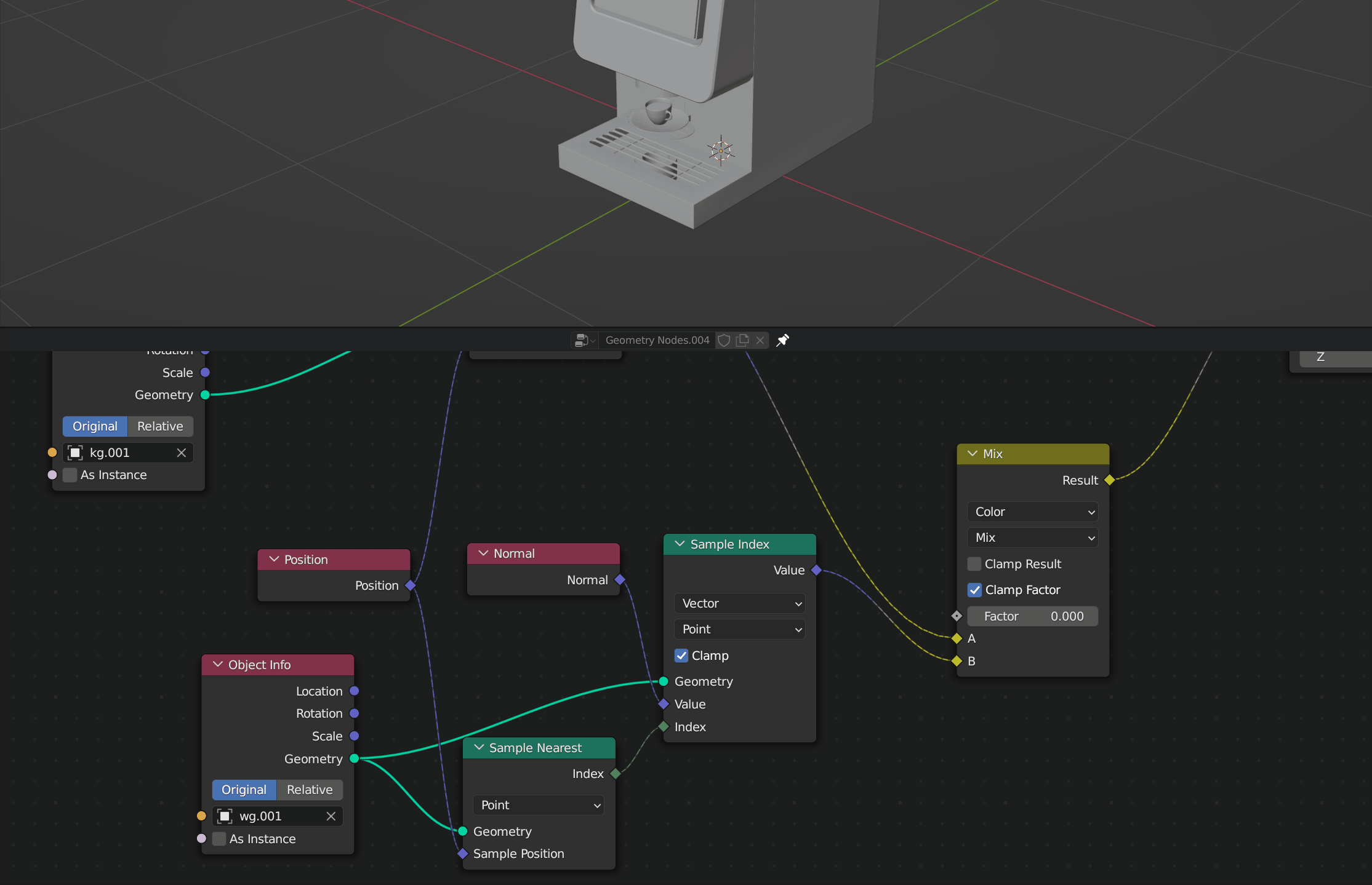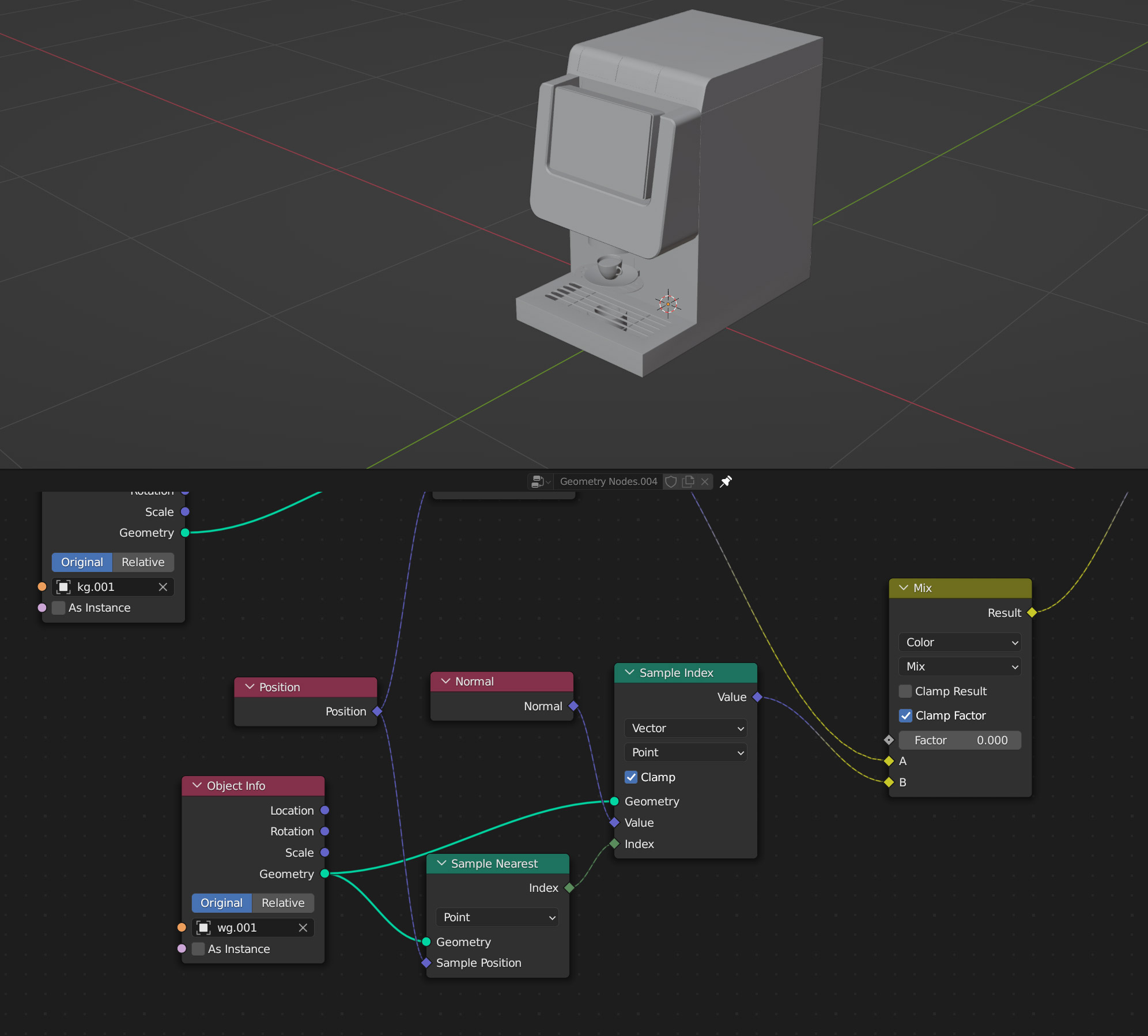 Und da im Blender 3.4.1 das hier nicht mehr benutzt wird "Transfer Attribute" .. habe ich das gefunden"Replace Transfer Attribute with "Sample Index(Vector & Point)". Plug a "Sample Nearest(Point)" node into the index of "Sample Index", Plug your Mesh's geometry output into the geometry input for both "Sample Nearest" and "Sample Index", then add a "Normal" node plug this into the value input of "Sample index", then add a "Position" node, plug this into the sample position input of "Sample nearest" :)"