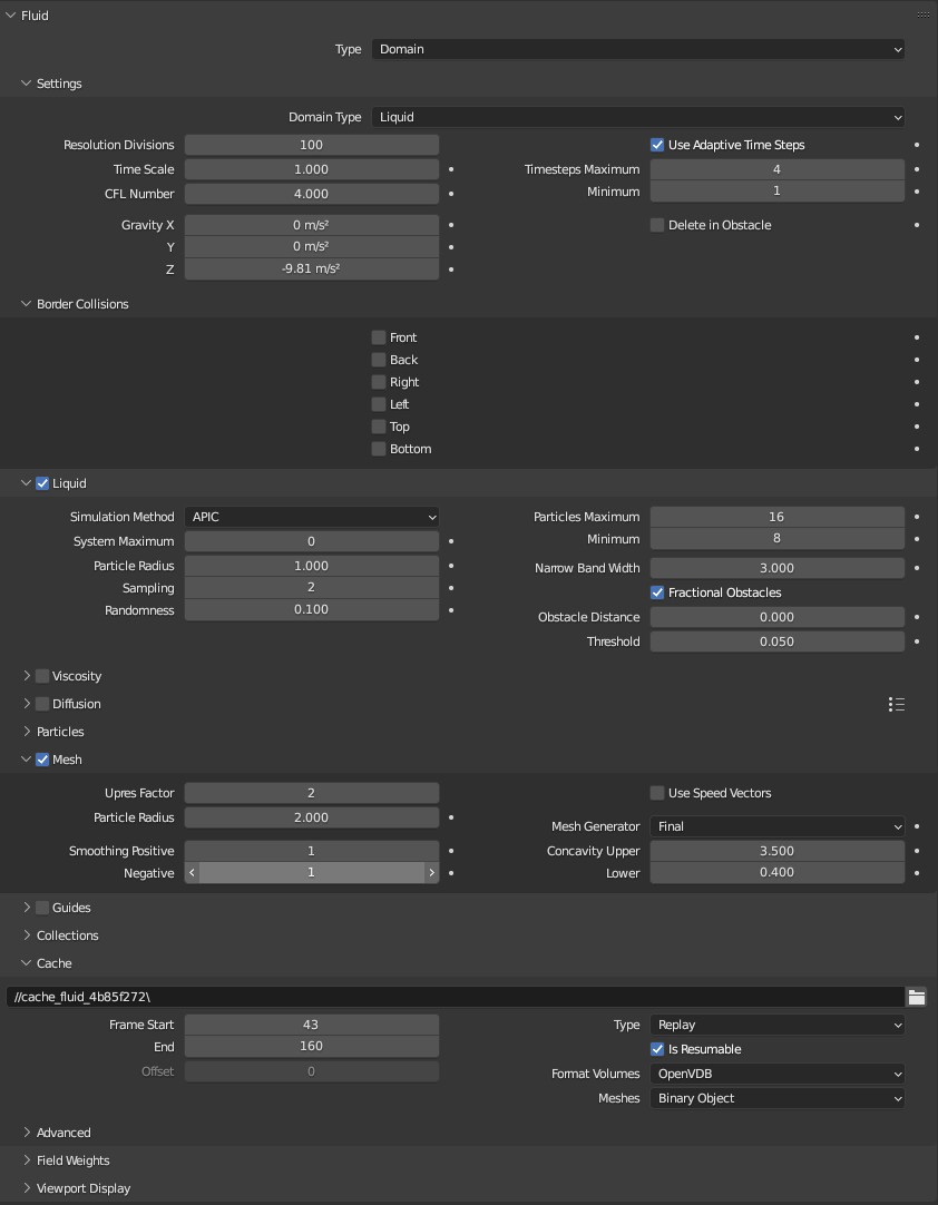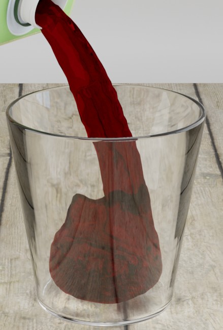 2) Die Flüssigkeit wirkt absolur nicht realistisch. Viel zu dickflüssig, wie ein Schleimklumpen im Glas, obwohl die Einstellungen eigentlich passen sollten (siehe oben)