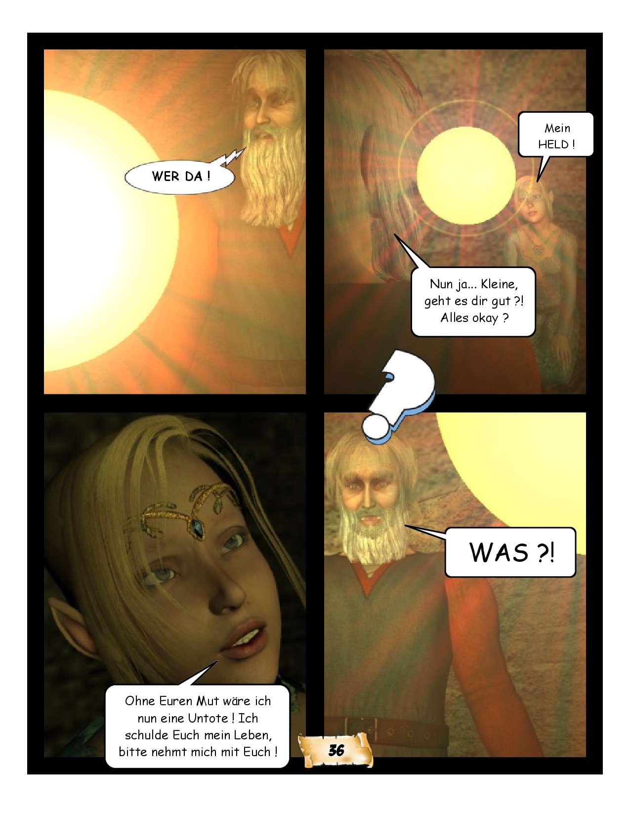Ist halt ein extrem "alter" Comic, da war ich noch jung und unerfahren im "Bildstory Telling". Hansum hat das Ende ja wunderbar zusammengefaßt... und ja, es gibt noch einen zweiten und dritten Teil, aber nur auf englisch. Die habe ich bisher nicht eingedeutscht... aber wenn Interesse besteht, poste ich diese auch. (aber auch am Ende von Teil 3 werden wieder Fragen stehen, da ich Teil 4 (mangels an Ressourcen damals) nicht erstellt habe. Den Teil 4 könnte ich "heute" mit den "neuen" Figuren erzählen... da überleg eich aber noch, wie ich das realiziere, da ich diese alten Modelle nicht mehr auf meinen Festplatten habe.
