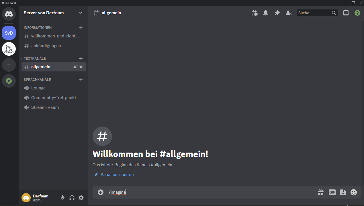 gehe also runter und schreibe hinter dem slash imagine schon beim ersten Buchstaben müsste Immagine Promp erscheinen