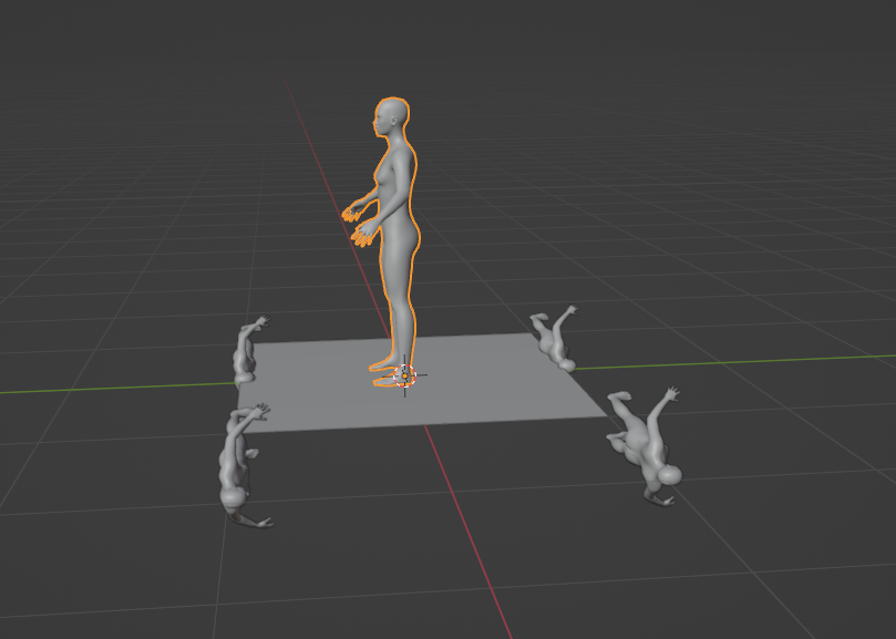 Wenn ich der Figur jetzt ein Rig zufüge und die Figur so kippe, dass die anderen senkrecht stehen, wird das Rig nicht mit gedreht. Was kann ich da machen?