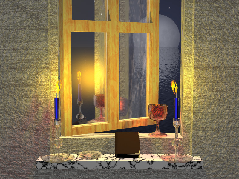 Mit Bryce rumzuexperimentieren macht richtig Spaß. Habe noch ein Bild gemacht, mit dem ich aber nicht so richtig zufrieden bin. Kann mir vielleicht mal jemand sagen, wie man die Flamme der Kerzen noch besser (narürlicher) hinbekommt?