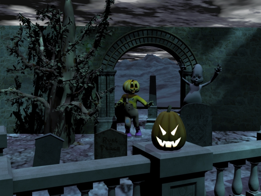 Links im Baum und im Torbogen über Jack-o-Lantern´s Kopf habe ich jeweils ein Spinnennetz platziert (war zusammen mit Grabsteinen und Kürbissen in nem Halloween-Pak) aber nach dem Rendern sind diese irgendwie nicht sichtbar. Was hab ich da falsch gemacht?
