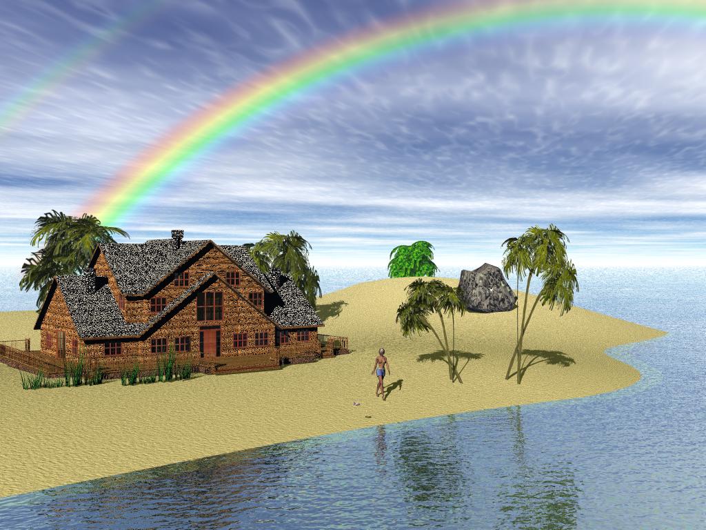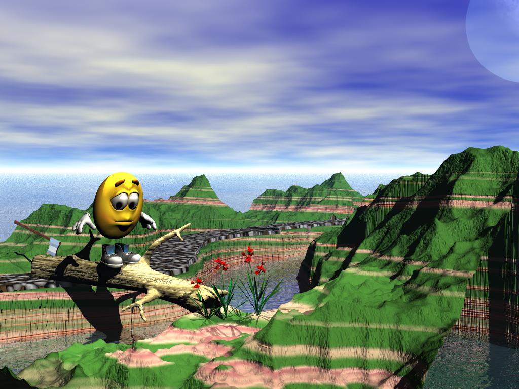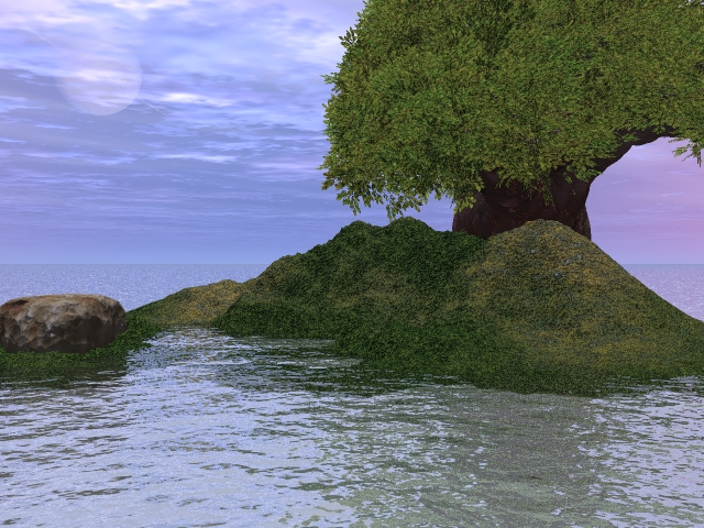 Sodele, hier nun mein drittes Bild, welches ich mit o.g. Programm erstellt habe. Das Erstellen geht irgendwie schneller als im Bryce find ich. Und nachdem ich die Rendereinstellungen etwas verändert habe, gefällt mir nun auch das Wasser