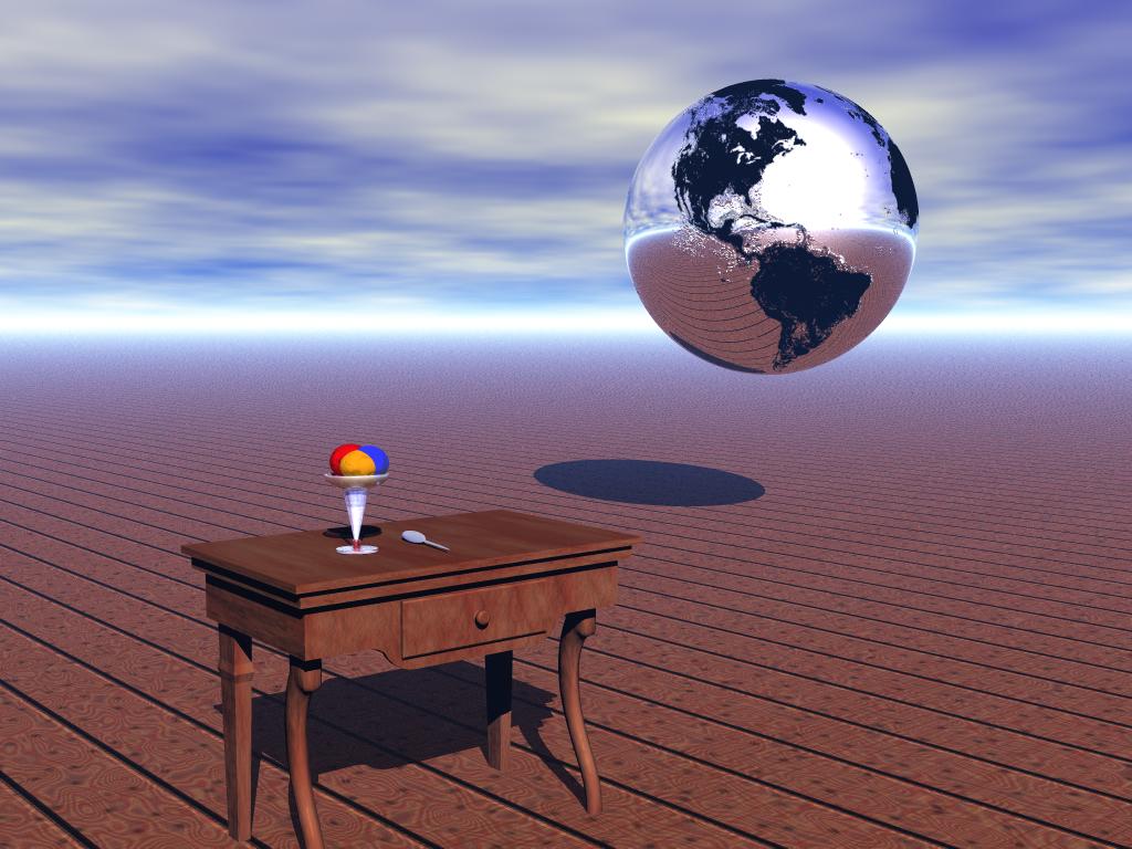 Ich hab mal aus Kugeln, Zylindern, Torus und den Positiv / Negativ Einstellungen einen Eisbecher und einen Löffel gemodelt. Ist sozusagen mein erster Versuch eigene Objekte in Bryce zu erstellen.