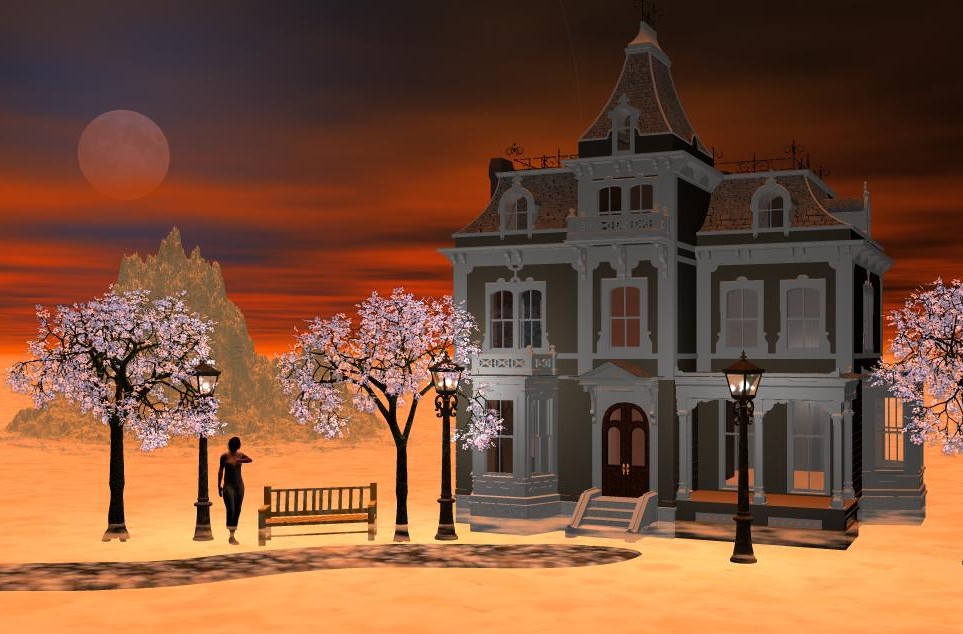 hier mal was gaaaanz anderes von mir. Ich habe, bis auf den Berg und den Weg, alles vorgefertigte Objekte verwendet. Der Straßenlaterne habe ich noch eine Lichtquelle hinzugefügt und diese als Gruppe kopiert.