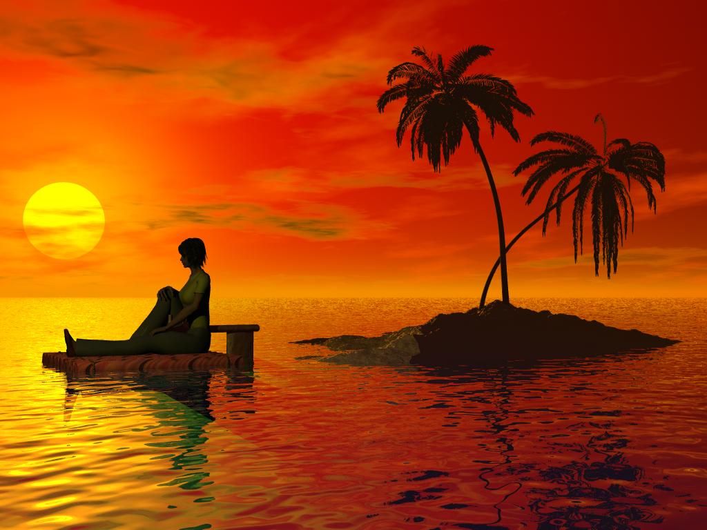 Zwei Palmen hat sie noch stehengelassen, der Rest ist leider fürs Floß draufgegangen. Ob sie ein Schiff finden wird? Wird sie überleben wenn der Tag hereinbricht und die Sonne heiß auf sie herniederbrennt?