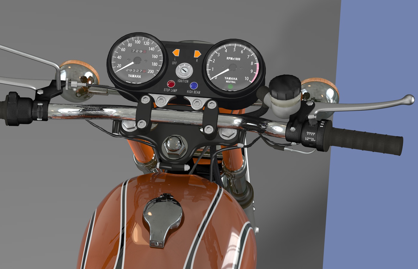 Dieses Motorrad kaufte ich mir 1975 oder 1976. Leider habe ich es nicht mehr, sonst wäre das Modeln viel einfacher als wie jetzt nur nach Fotos und Augenmaß. Blaupausen konnte ich auch keine finden.