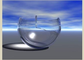 " Erstelle einen Glaszylinder und einen Fuß aus einer abgeflachten Kugel, von der du einen Würfel subtrahierst. Damit hast du dein zerbrochenes Glas."