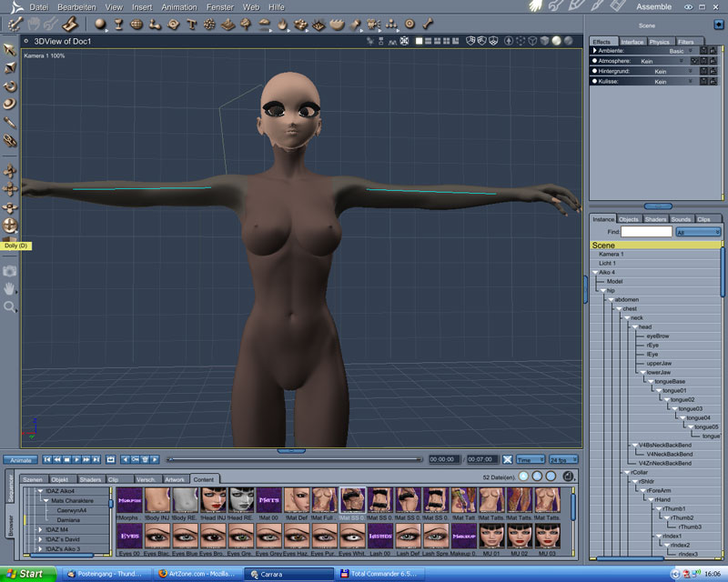 Derzeit kann ich "nur" die V4 importieren, morphs anwenden, aber bei den Texturen beisst des (noch) aus. Die aiko konnte C7 nicht finden, obwohl ich den weg zugewiesen habe.