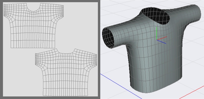 Hier ist mal n simples T-Shirt als OBJ und FBX nach meiner angesprochenen Methode zerlegt, ausgebreitet+gebügelt und anschließend wieder zusammengenäht.