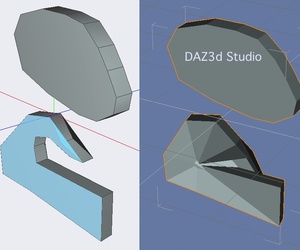 Das größte Problem sind nGons (Polygone mit mehr als 4 Seiten) - damit kann DAZ Studio nix anfangen. Sogenannte non-coplanare Flächen (Hier liegen die Eckpunkte eines Quads nicht mehr auf einer Ebene) in Verbindung mit DAZ3d Studios Smooth shading sieht dann noch zusätzlich hässlich aus - das kann man aber entweder deaktivieren oder einen anderen Winkel einstellen. Dein Mesh hatte allerdings noch jede Menge umgedrehte "Normale" (dunkel dargestellt im ersten Bild) - um das zu korrigieren kann man sich die Richtung erstmal anzeigen lassen und dann mit "unify normals" den "Schaden" beheben.