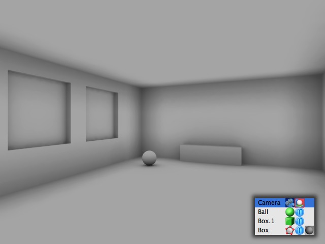 AO Rendering funktioniert auch in geschlossenen Räumen ohne Lichtquelle, wenn man die Strahlenlänge den Raum-Maßen anpasst; siehe Bild.