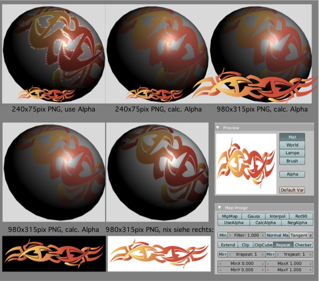 Das beste Ergebnis ist das letzte mit Decal auf weißem Hintergrund. Blender hats automatisch freigestellt - warum auch immer - auf jeden Fall spart es einem den Alphakanal mit seinem AntiAliasing Mist.