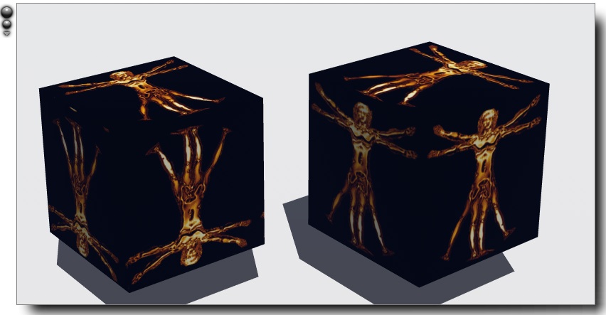 Bild 1: Links Hexagon Würfel mit "Cubic Projection", rechts: Bryce Würfel. Bryce ist hochgradig spezialisiert seine Objekte mit UVs auszustatten.