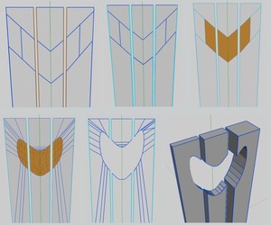 6. "Extrude region". Habe es mal unterschiedlich dick gemacht damit man es besser sieht.