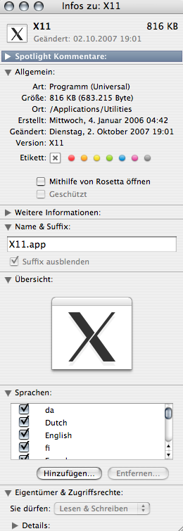 Spotlight findet kein "x11" ?? Sehr merkwürdig. Hast Du noch andere angeschlossene Laufwerke?