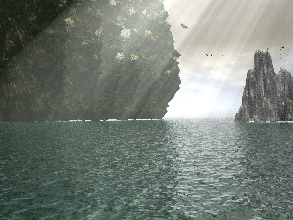 Als reiner Versuch wäre mein Vorschlag, dem Wasser das Blau etwas zu nehmen ;).