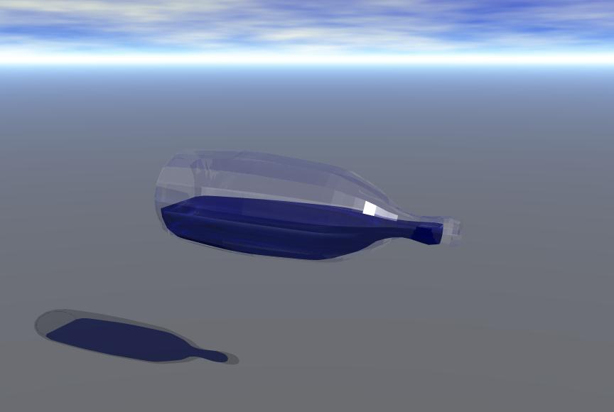 Arwenverdopple die flasche und halbier sie und setz eine wassertex drauf und mach sie ein wenig kleiner so das sie reinpasssst ohne das material der orginalen zu schneiden