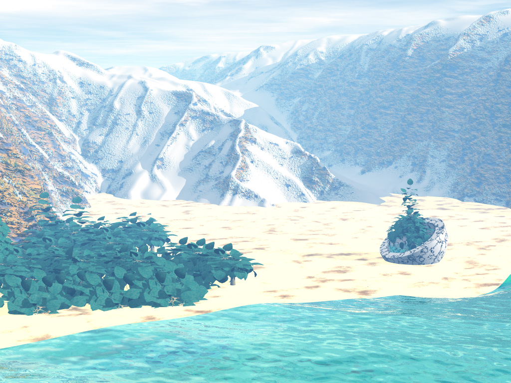 Hier ist mein dritter anlauf mit terragen, jetzt habe ich in etwa begriffen wie es funktioniert. ich schaue immer auf objekthoehe und kamerahoehe, so bekomme ich die landschaft einigermaßen in den griff. allerdings war die renderzeit beachtlich: 2:42:26 ![]()